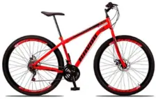 A KSW Aro 29 traz quadro de alumínio, câmbio Shimano de 21 marchas e freios a disco. É uma bike completa, ideal para quem precisa de desempenho tanto na cidade quanto em trilhas leves. Com excelente estabilidade e componentes de qualidade, ela entrega segurança e fluidez no pedal. Uma das favoritas de quem procura melhores bicicletas boas e baratas com pegada mais profissional
